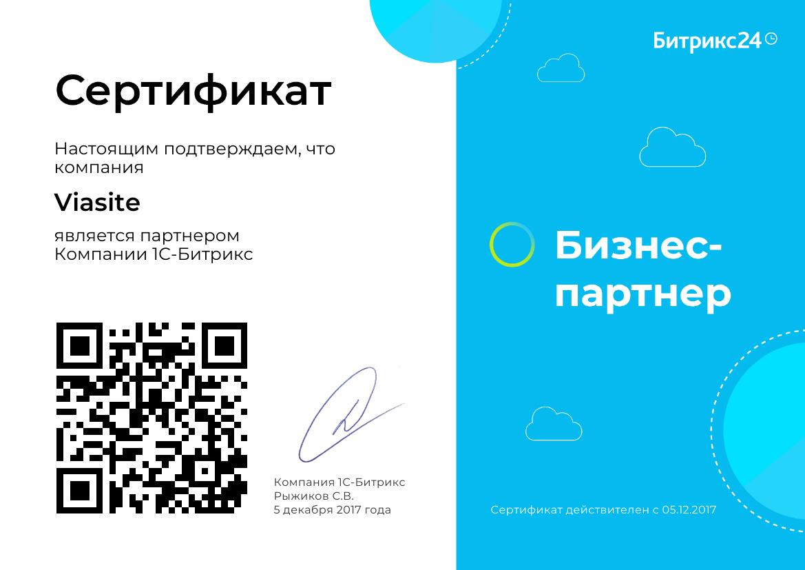 Сертификат бизнес-партнера Битрикс24